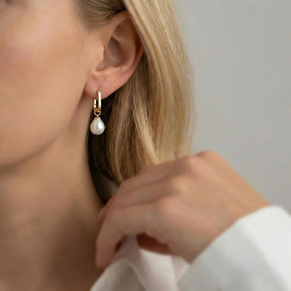 Orecchini a cerchio apribili da donna in oro giallo 375 con perle coltivate d'acqua dolce. Design elegante e raffinato, perfetto per ogni occasione, per aggiungere un tocco di classe e luminositĂ al tuo stile quotidiano. Un gioiello senza tempo.